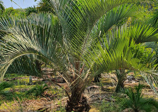 Folha: As folhas são pinadas , pinatipartidas, arqueadas e recurvadas, de coloração verde a azul-acinzentado; depois que as folhas secam, na maioria das vezes, as bainhas espinescentes continuam recobrindo o estipe (tronco).